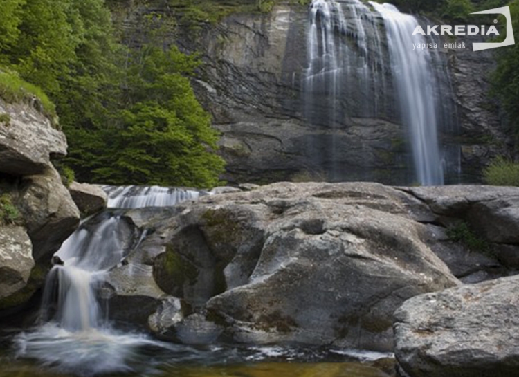 metredir. Yakınlarında dururken yüzünüze çarpan su damlacıkları bu şelalenin